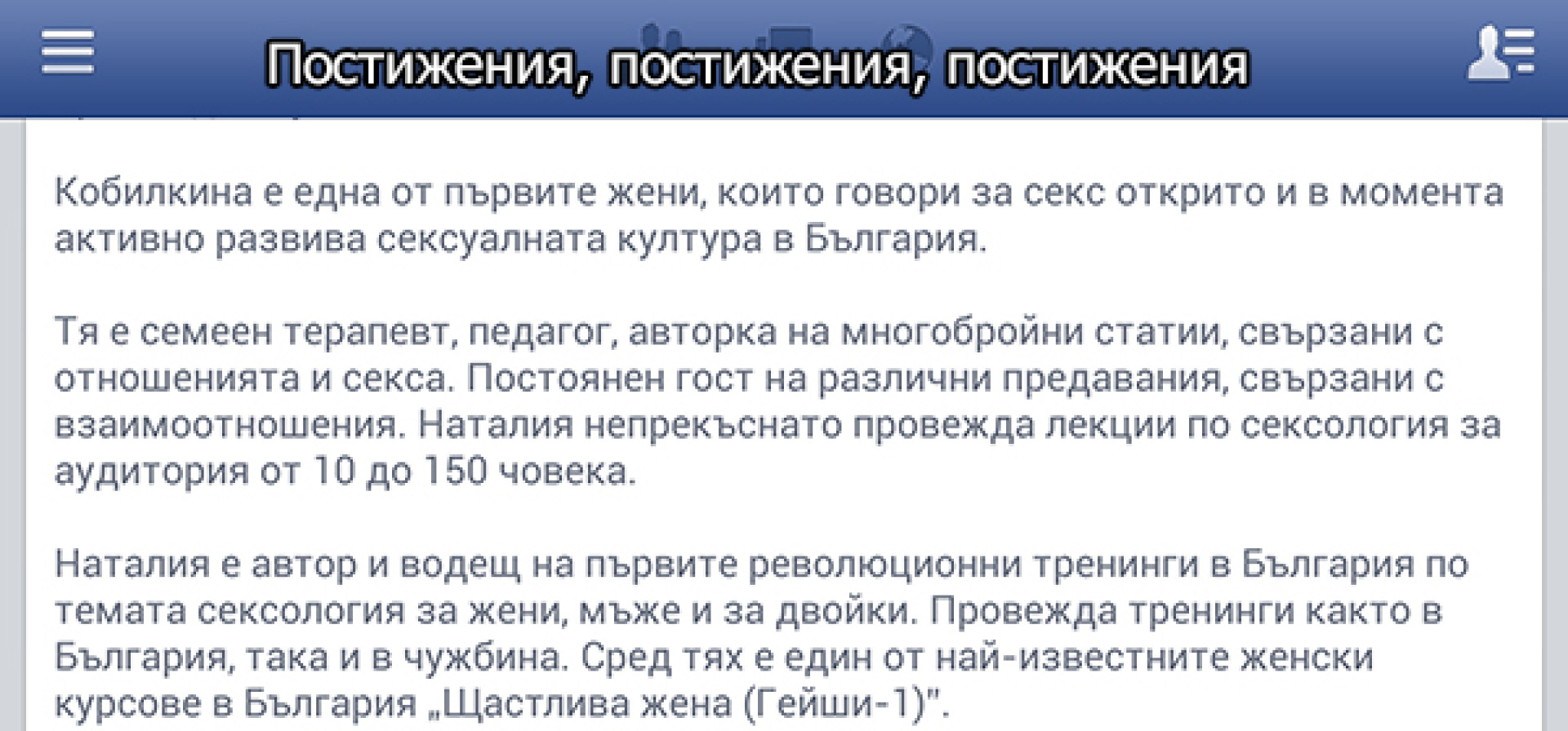 Секс-гуруто на България Наталия Кобилкина оповести във Facebook на почти правилен български език, че записването за новия ѝ семинар “Как да печелим пари от прости жени”, вече е отворено.