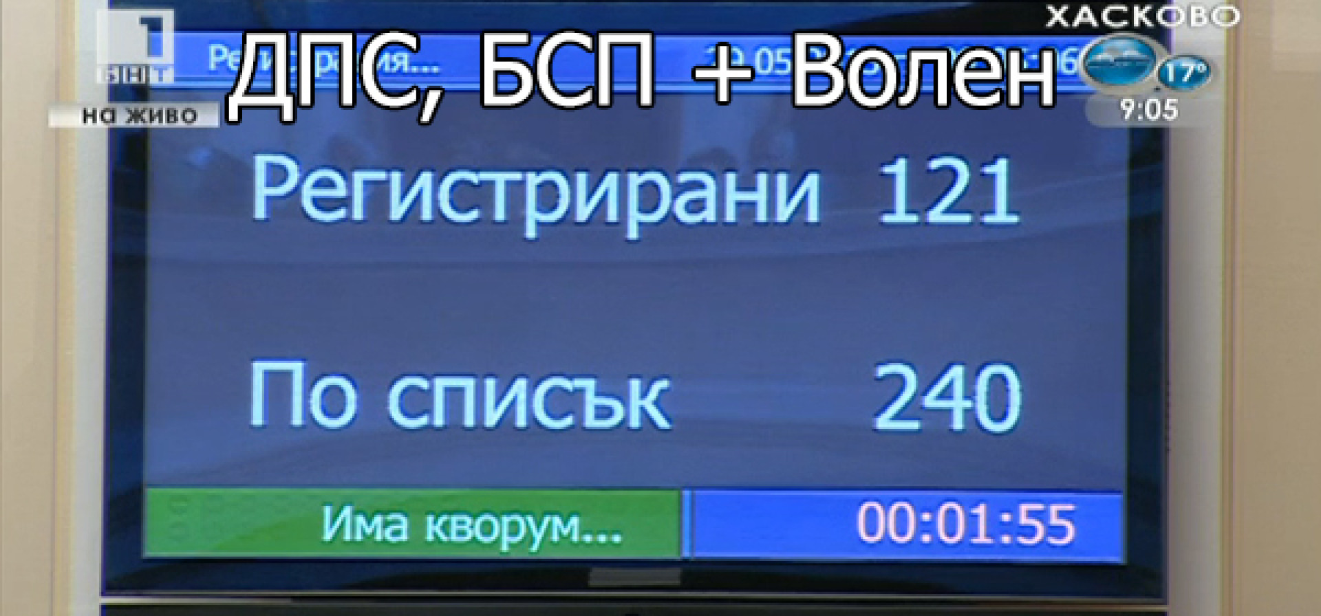 С регистрацията на кворум чрез гласа на Волен Сидеров към тези на БСП и ДПС, стана ясно, че има достатъчен кворум, за да бъде прието новото правителство на Орешарски, стана ясно, че имаме Кабинет!