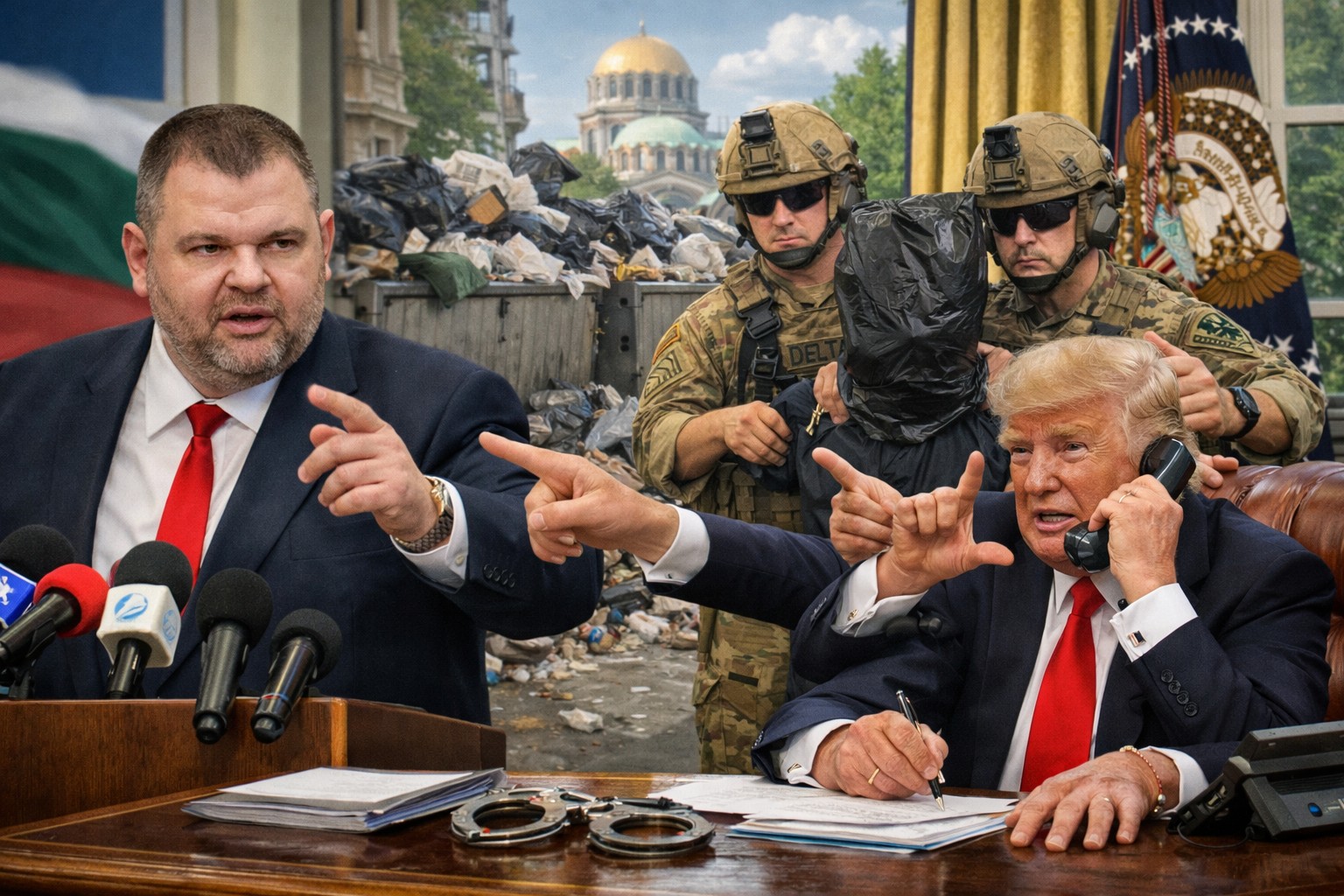 СОФИЯ — Лидерът на ДПС-НН Делян Пеевски призова президента на САЩ Доналд Тръмп да разпореди арест на кмета на София Васил Терзиев във връзка с продължаващата криза с отпадъците в столицата.