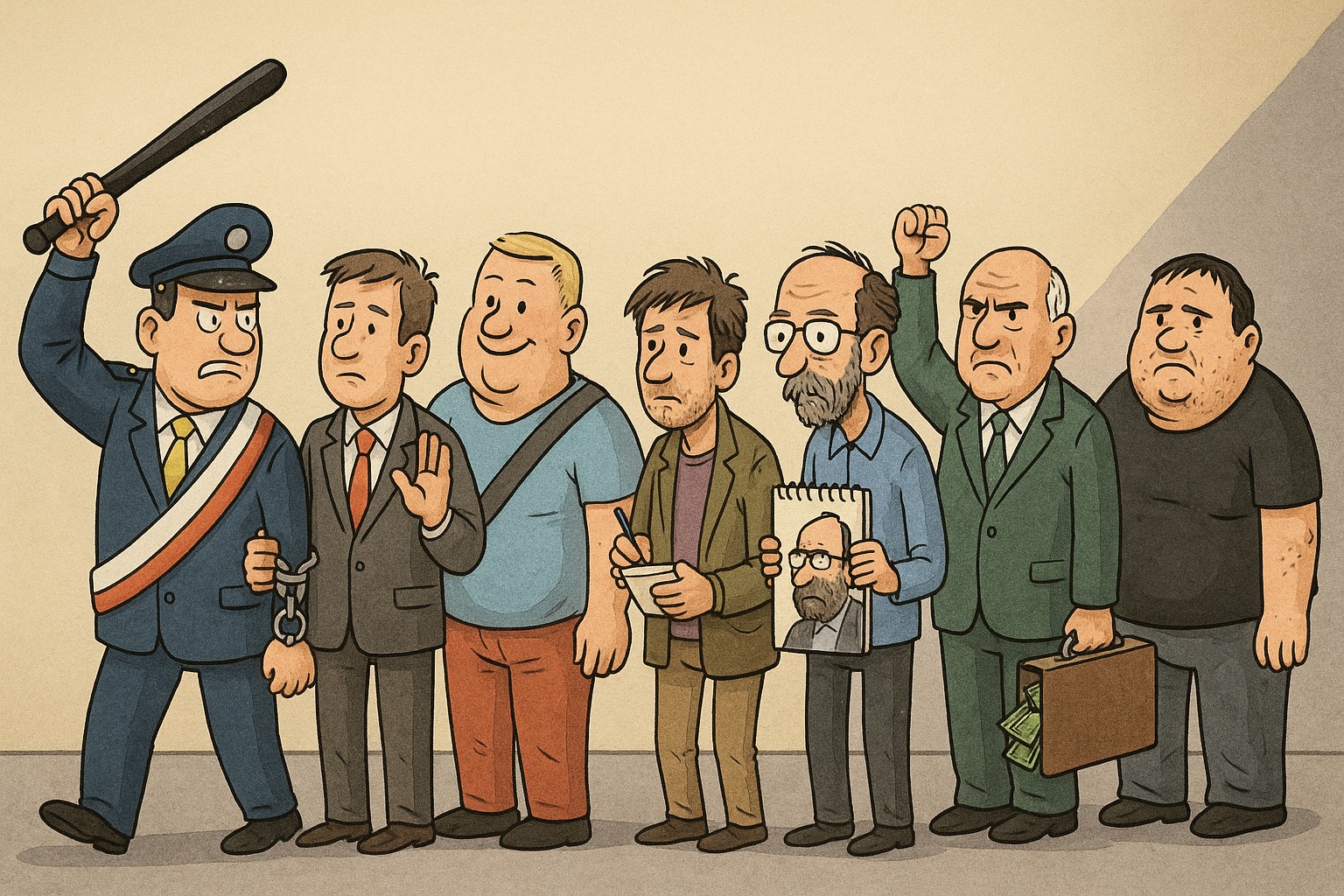 Колкото по-дебели рисувате политиците, толкова по-тънки ще са ви портфейлите и няма да ви убиват джобовете, докато ходите пеш. Най-хубавата репресия е саморепресията! То е като да се гъделичкаш сам, не го усещаш така.