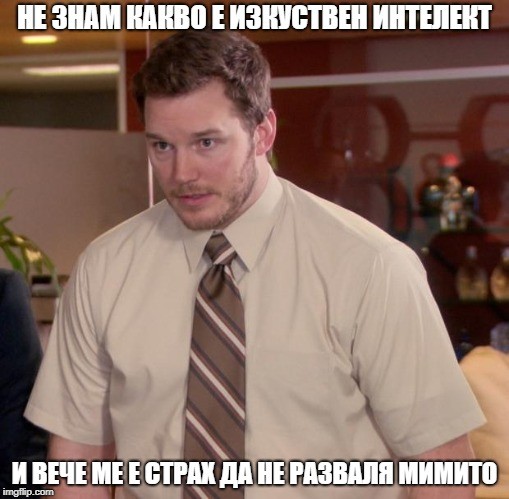 "Явно е много смешно да не знаеш. И аз се смях, щото да не се смеят на мен. Но нямам идея какво е изкуствен интелект и явно никога няма да разбера, докато не ни превземат роботито" - мисли си всеки, включително четящият този текст.