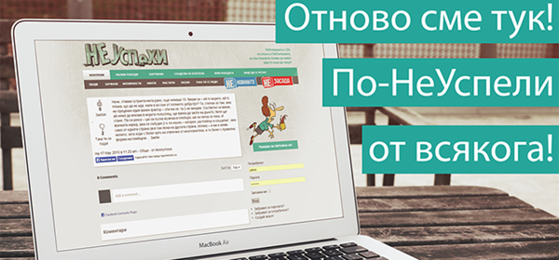 www.neuspehi.com, където жителите на Вселената могат да споделят своите несполуки и да потърсят съчувствие (също неуспешно), възстанови архива, набран през изминалите години и предоставя на сеирджиите нови и свежи провали за без пари!