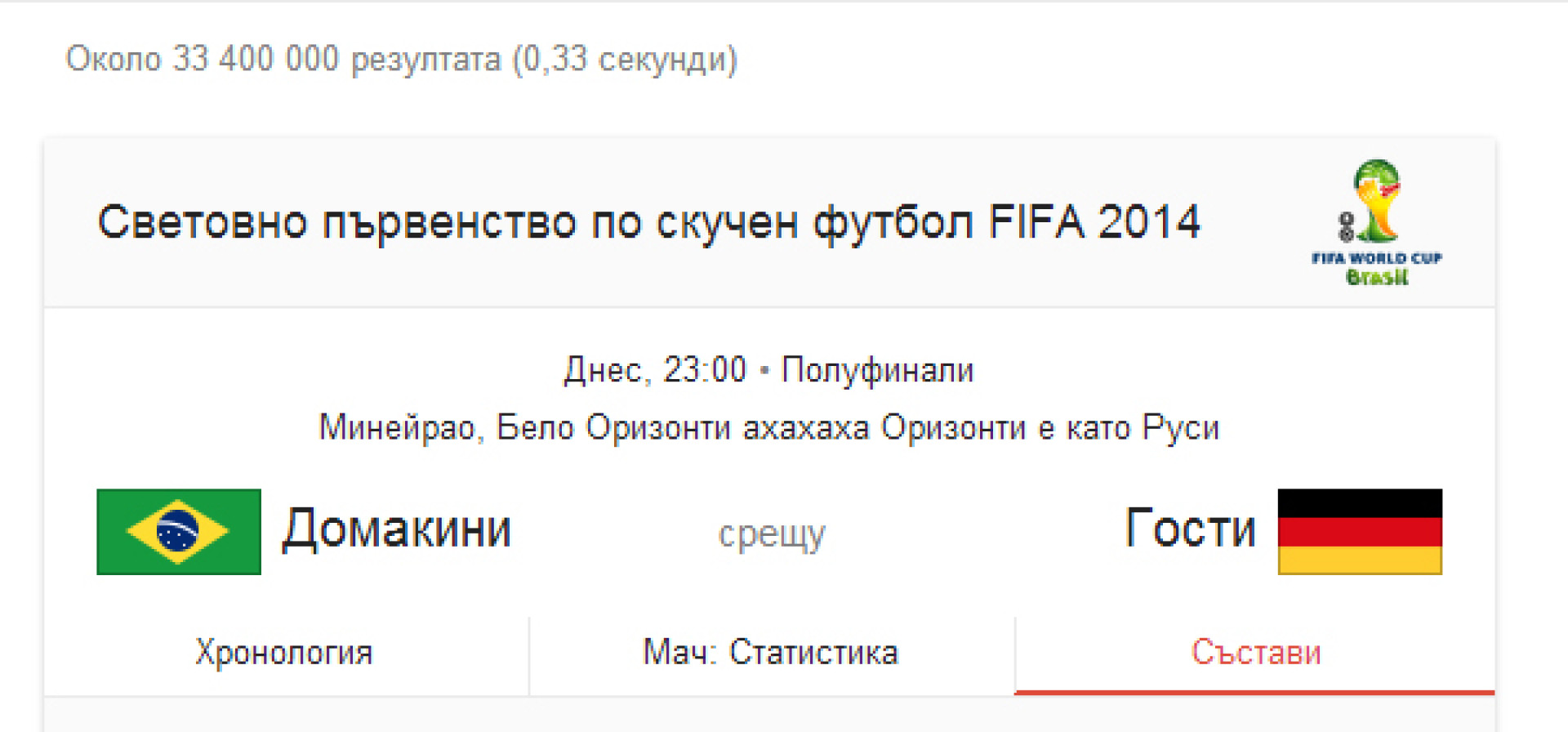 Бразилия - Германия (Наживо по минути™)