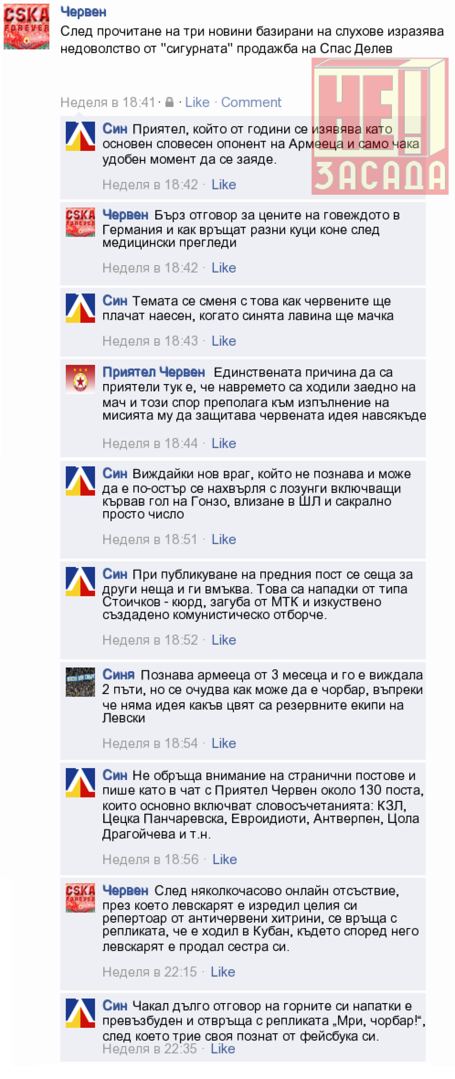 Когато няма мачове от първенството, а подготовката на отборите е в начална фаза, феновете имат все по малко теми за разговори и спорове по между си. Ето една типична българският Фейсбук картинка, която е пример какво правят лятото феновете: