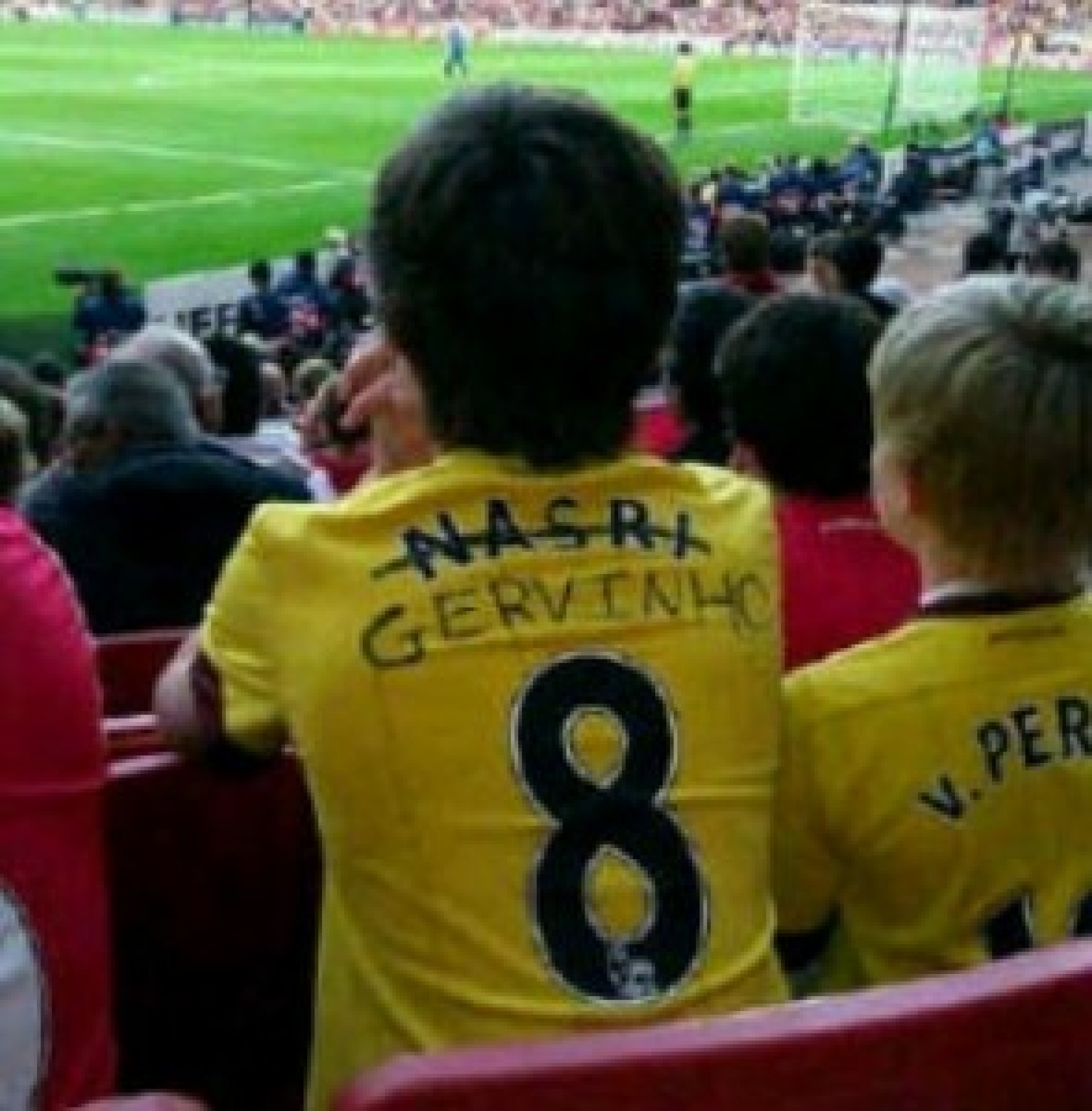 2. В нашия любим блог Off the Post се натъкнахме на следните два забавни фотоса. Едно фенче на Арсенал очевидно е било принудено от баща си да му спести 100 паунда (или мародерстване на близкия магазин за спортни стоки, но нали не е от Тотнъм). Също така може да видите и Тъмньо - стар талисман на Астън Вила (Другото Уест Хям)