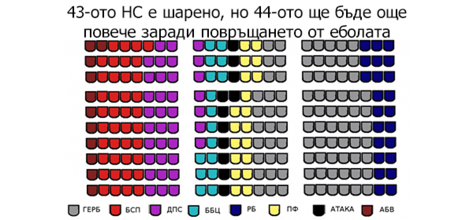 Съставът на 44-ото Народно събрание, ако изборите бяха днес, щеше да включва 7 партии и коалиции, както и ебола, която ще замени АБВ в Парламента и ще се превърне в 4-а политическа сила.