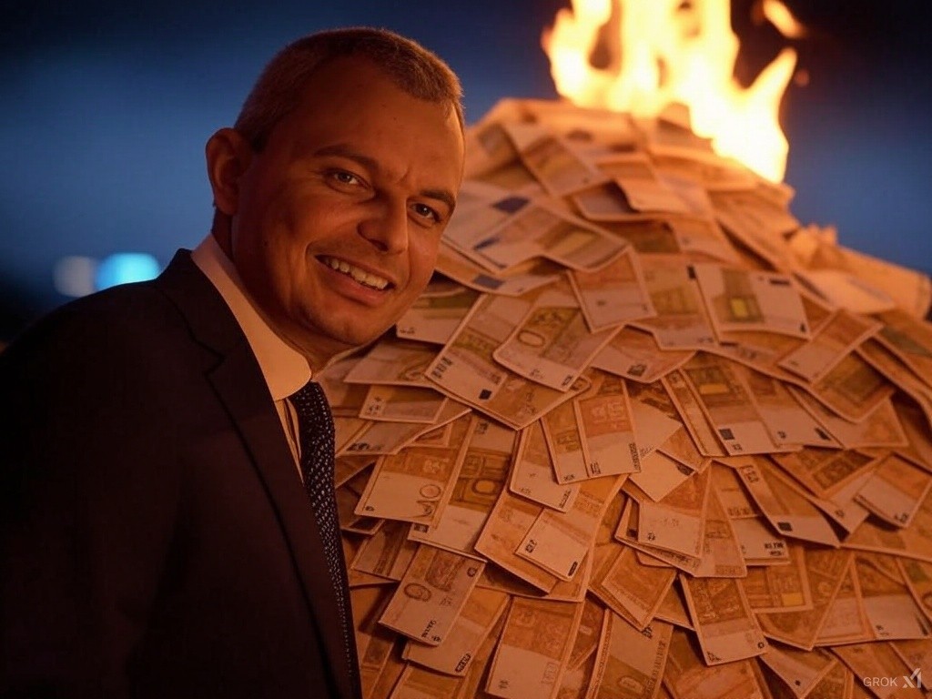 СОФИЯ - В продължение на протестите срещу въвеждането на еврото лидерът на партия "Възраждане" Костадин Костадинов демонстрира своята решителност, като символично изгори 200 000 евро от личните си средства.