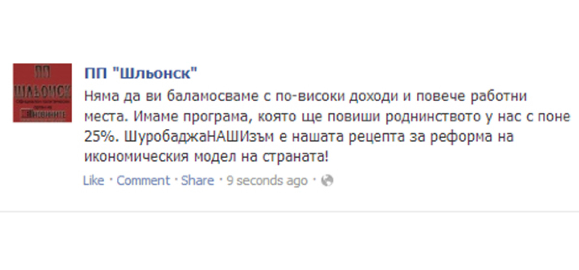 "Ясно е, че у нас пазарната икономика е мираж. Свободният пазар е по-свободен за едни, отколкото за други. Няма да ви сипваме илюзии, че ще го поправим. Ще ви сипем илюзии, че повече хора ще бъдат наши хора" - съобщават от централата на Шльонск.