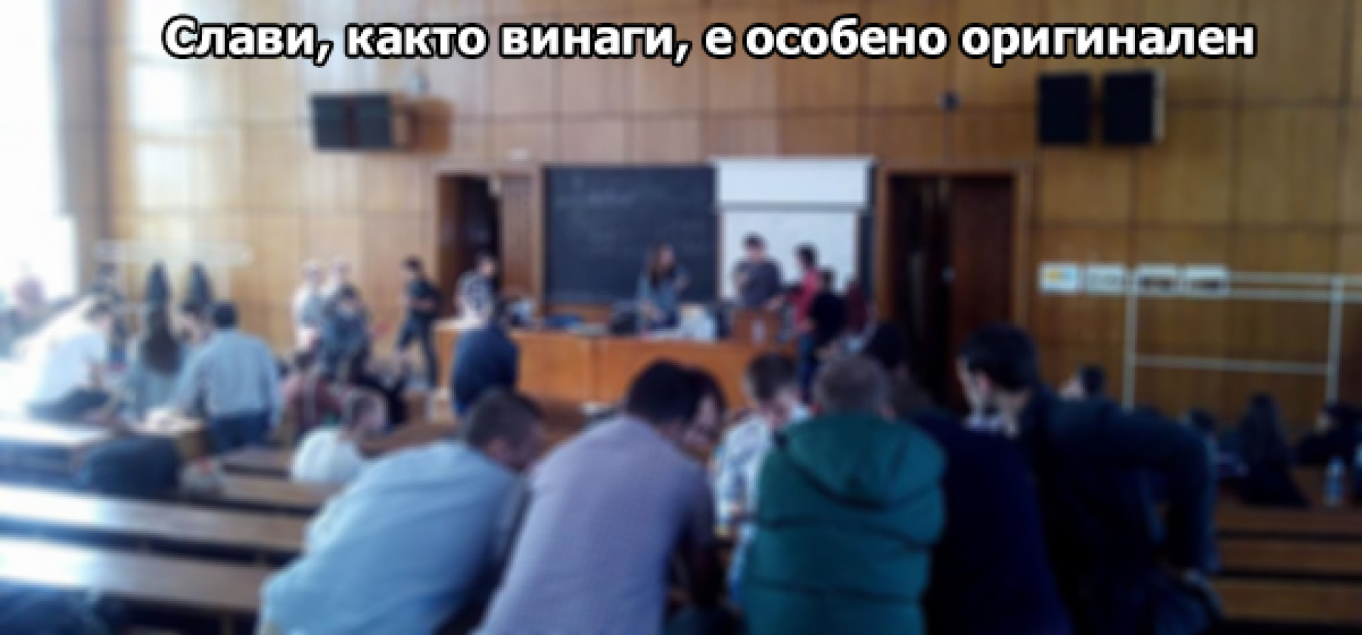 СОФИЙСКИЯ УНИВЕРСИТЕТ - Слави Трифонов и най-честите гости в предаването му - неговите сценаристи, окупираха емблематичната зала 272 в Софийския университет и се обявиха срещу мафията, която управлява държавата.