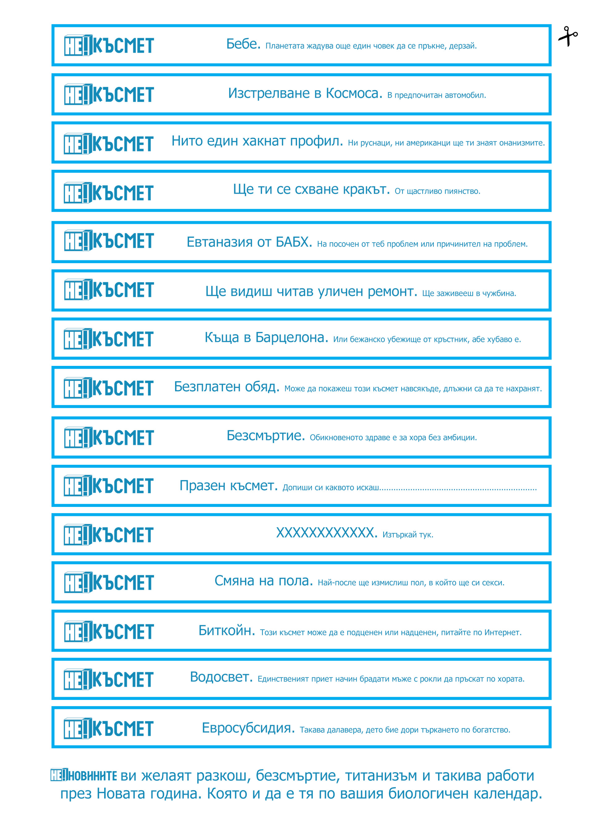Ето къшей хитринки, дето да си бичнете в баницата на Нова година, да се позасмеете, да обидите по-скучните си гости или да се направите на интересни пред някакво уж по-духовито пиче. Нали.