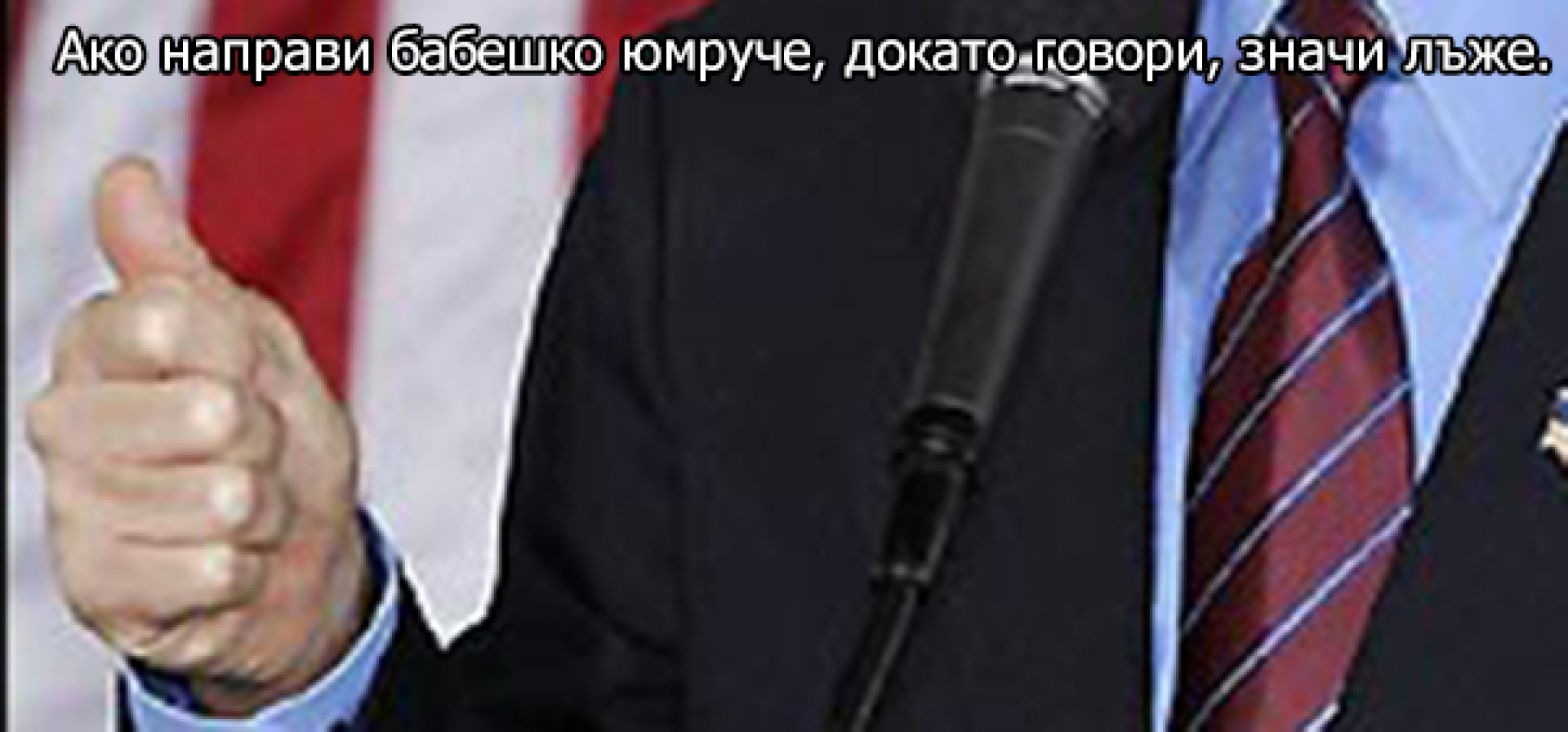 1. Говори, ръкомахайки с нелепо устроен юмрук (на снимката горе). Това е вносна практика от американците, защото ръката в такава поза прилича на панирано пилешко бутче и това вдига нивото на допамин у аудиторията. В България прилича на кренвирш, което може да подведе хората, че даден политик застъпва национални каузи.