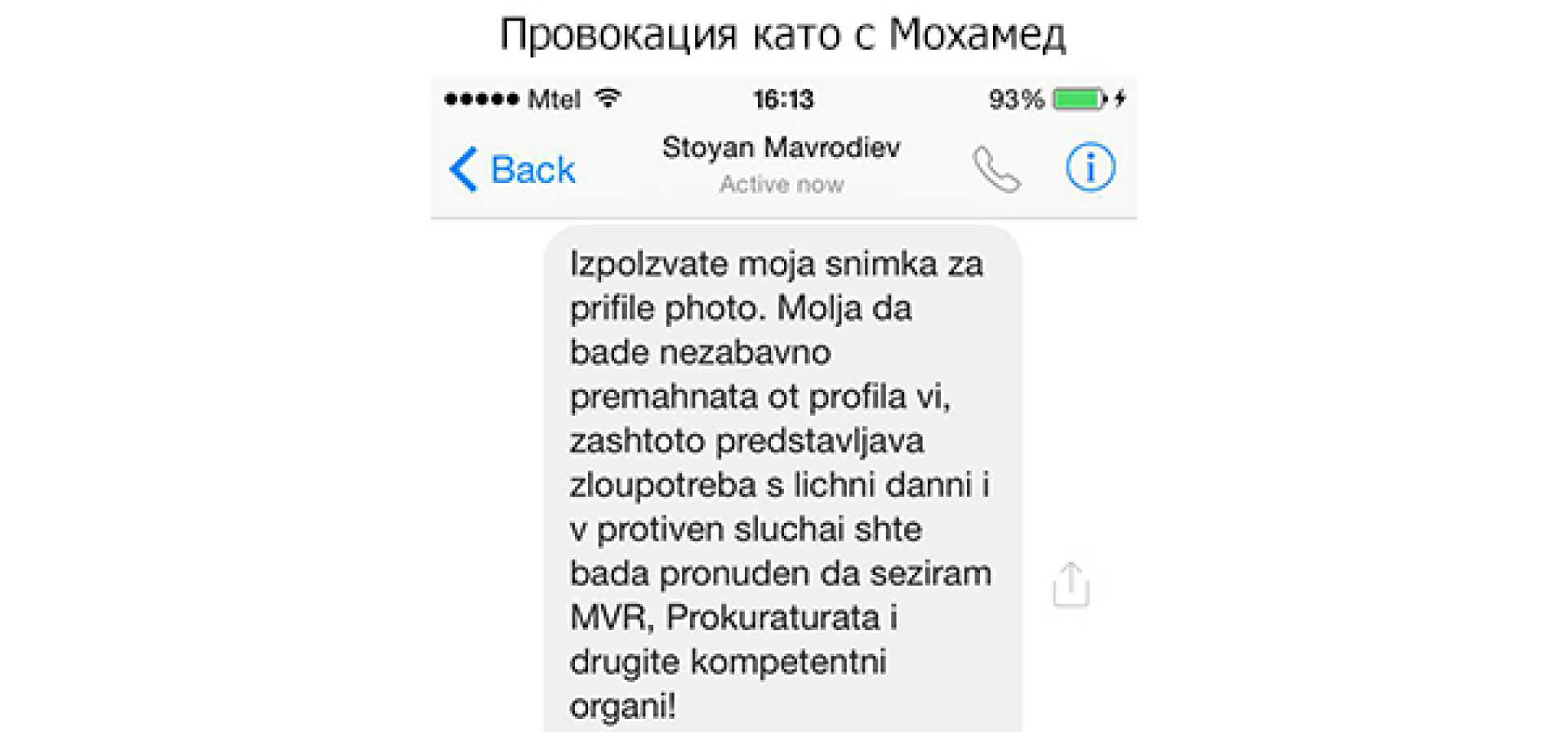 Стоян Мавродиев заплаши през съобщение във Facebook, че ще поръча контра-карикатури в някоя истинска медия като агенция Пик или в-к Труд.