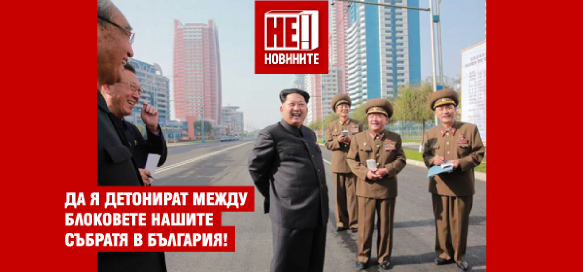 "Обещавам на българите за следващата Нова година да им подаря водородна бомба. Да си я гръмнат между блоковете! Пробвахме ги, успешни са, добри бомби правиме!" - обяви Ким Чен Ун.