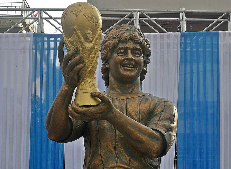 Бронзовият паметник, наглед символизиращ аржентинската легенда, ликуваща с трофея от Световното първенство в Мексико през 1986 година, се оказа в чест на лидерката на БСП Корнелия Нинова.