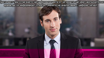 "Хората не са заинтересовани дали ще имат телевизия или не. От 1-и септември спираме аналоговия сигнал, а цифровизирането е достигнало едва 3-4 процента от домакинствата, при това те си имат частни доставчици и не ги вълнува" - обяви говорителят на цифровизацията от телевизора.