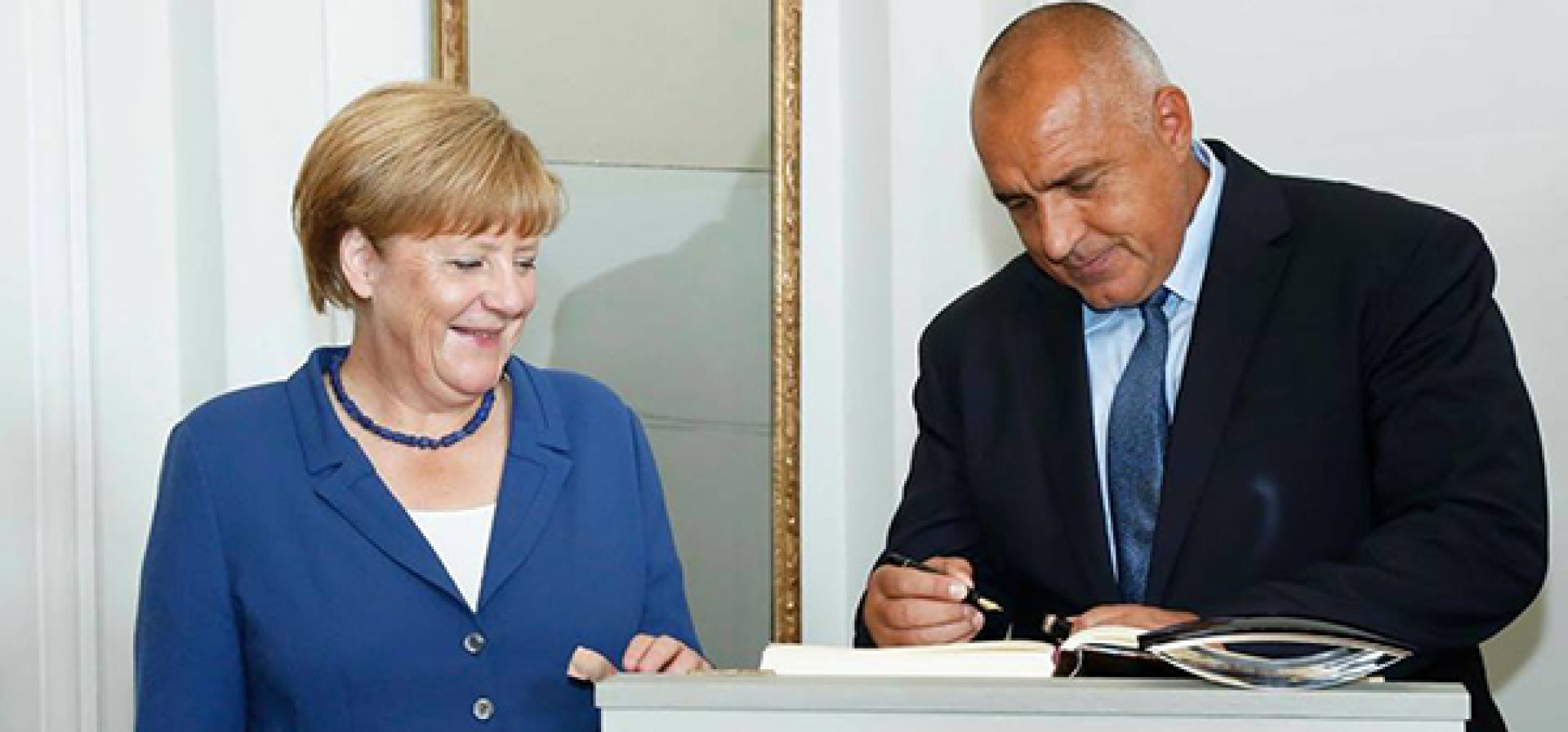 2. Вижте снимката горе. Борисов подписва да стане част от мъжкия харем на Меркел.