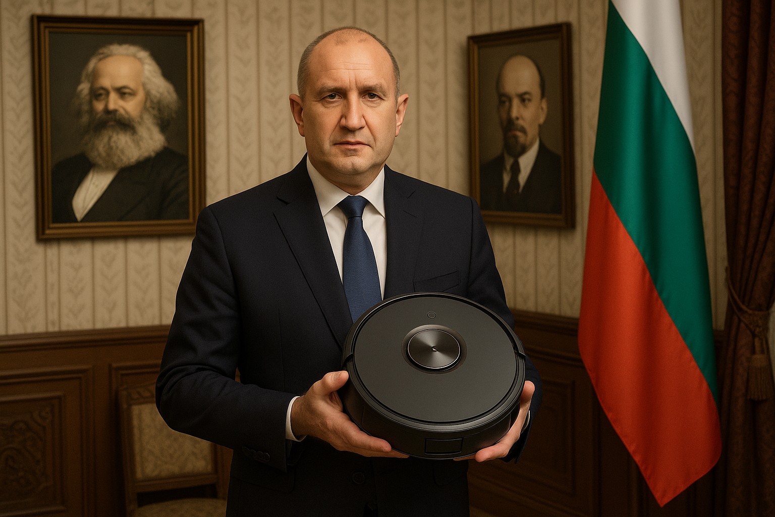 „Щом всяка форма на човешко присъствие се приема като лична обида, ние сме длъжни да минимизираме риска. Прахосмукачката е с последен софтуер, разбира от конституционни процедури и няма биологичен пол, което би трябвало да удовлетвори всички страни“, заяви пред журналисти говорител на партията, като уточни, че уредът вече е одобрен от Изпълнителната комисия.