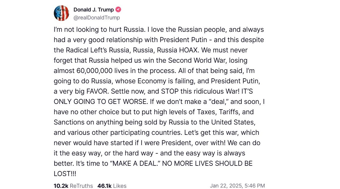 ДОНДУКОВ ДВА - Президентът на Република България Румен Радев отново размаха пръст към глобалната сцена, след като коментира вчерашен пост на Доналд Тръмп в собствената му социална мрежа.