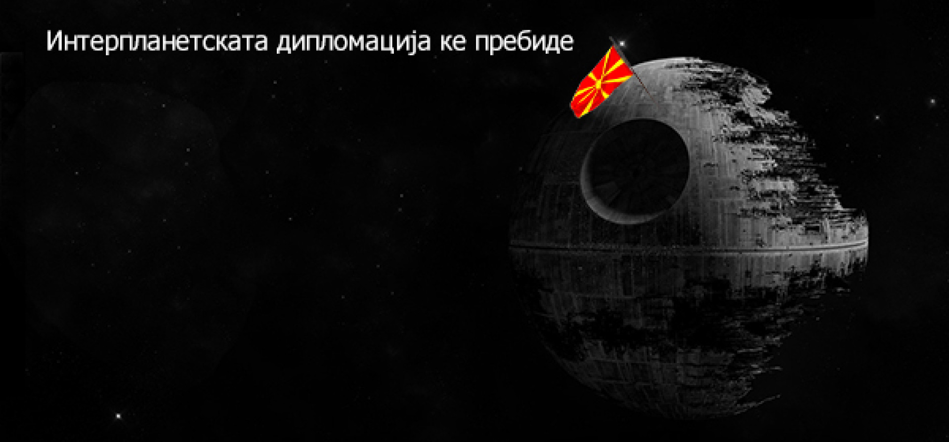 Застанал пред тухлена стена с графит гласящ "Македония на три планети" той изтъкна, че запазването на мира в галактиката и на Балканите винаги са били сред основните приоритети на държавата и съвсем лицемерно пожела на всички силата да бъде с тях.
