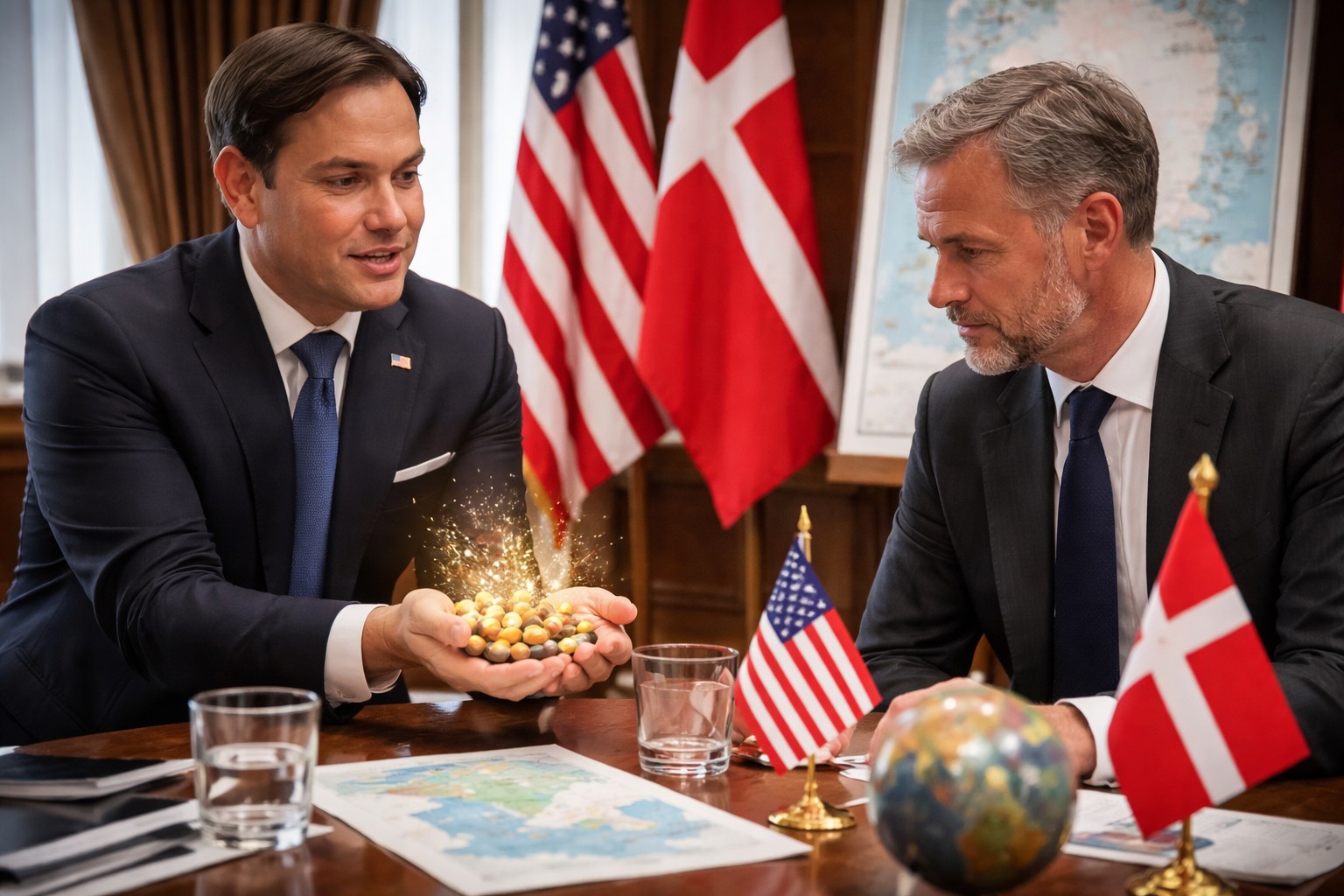 НУК — Държавният секретар на САЩ Марко Рубио е направил формално предложение към Дания за бъдещето на Гренландия, включващо шепа вълшебни бобчета и уверение за „експоненциален растеж“.