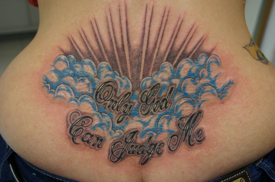 На пространството между двата хълбока на американския държавен глава пише с красив шрифт "Only God can judge me", което на български се превжда така: "Само Бог може да ме джудже".